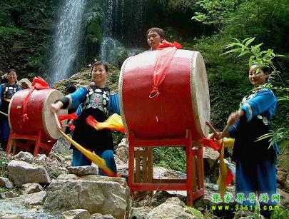 苗族花鼓源于唐代,至今已有一千多年的歷史。為什么叫花鼓?因無文字可考,據老年的花鼓師傅說,幼年他們跟上一輩人學鼓時,鼓上都貼有各種鮮艷的花瓣,擊鼓,不準擊落花瓣,這便要上乘的功夫。也許這就是花鼓的由來。