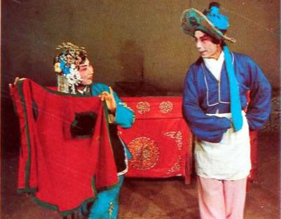 蚌殼用蔑扎骨架,蒙布或紙,外繪蚌紋,以紅綠綢鑲邊,內(nèi)貼水銀碎鏡片。由一旦一丑表演。旦扮蚌殼精,身背蚌殼,表演“扯四角”、“開蚌”、“戲水”、“整容”、“照鏡”、“戲翁”等動作,含蓄逗趣,活潑可愛。丑扮魚翁,手持撒網(wǎng),表演“踩水”、“窺蚌”、“戲蚌”等動作,詼諧風趣。常令人捧腹。伴奏以弦樂為主,伴以竹笛,幽雅悅耳。