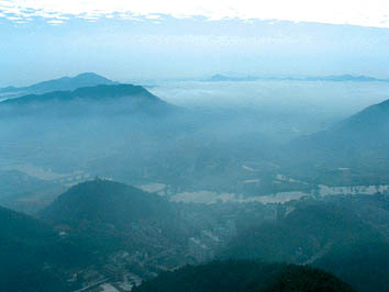 瀏陽城西約15公里神嶺一帶,三峰鼎峙,蔥青入郭,中間有一大湖,曰巨湖,其山也叫巨湖山。巨湖煙雨乃指春夏之交,清晨山頂石煙繚繞,霧入云霄,儼若雨下,變幻萬千,周忠信詞曰:“煙雨暗層巒,西望茫茫,樹墟城郭霧中看。氣涌潮心膚寸引,釀就輕寒。幾縷向空翻,數(shù)點飄殘,瀟湘彭蠡合奇現(xiàn)。疑是南宮傳筆意,水墨溪山。”