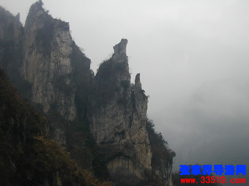 南天門——沿著河水一直往里走,在溪水最深處,可以仰望那隱藏在云霧里的南天門。它并不同于天門山的天門洞。它獨立于眾山之中,就像真正的通天大門,當(dāng)你翻過了前面的天門洞,卻還要再通過這座南天門,方可真正羽化登仙。南天門旁邊的幾座山峰,也都生的奇形怪狀,倒也天然形成了一個個大大小小的自然景觀。宛如天兵天將般守衛(wèi)南天門的將軍巖,象征南天門仙家氣息的蠟燭峰等,散落在四周,構(gòu)成了一個整體的山體奇觀。