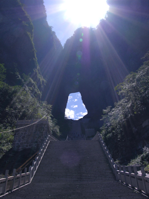 洞,這一大自然的造物杰作,嵌于千米絕壁之上,如明鏡高懸,似天門(mén)獨(dú)啟,一年四季吐納云霧雷電,充滿著天宮帝閣的神秘感,其真正的形成原因至今還沒(méi)有令人信服的科學(xué)解釋.