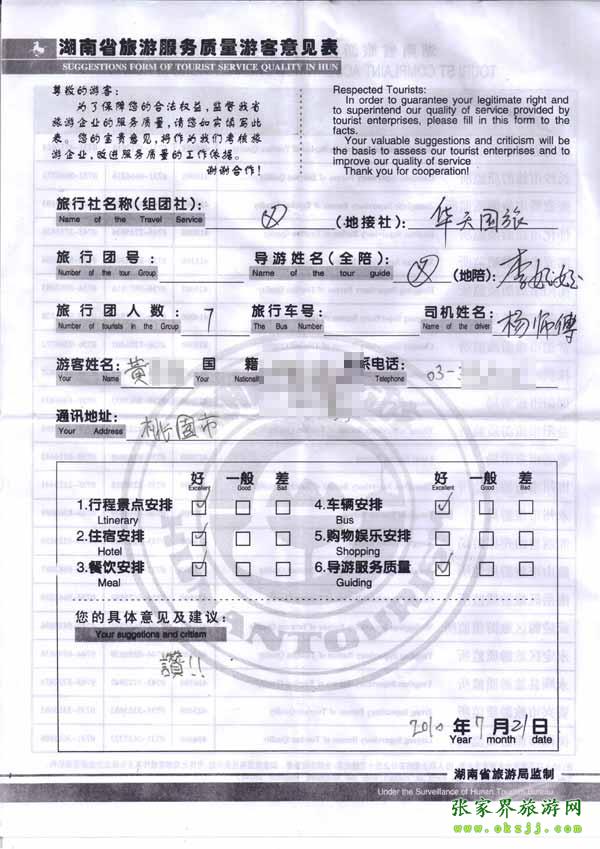 2010年7月21日臺灣黃小姐一行7位旅游質量反饋