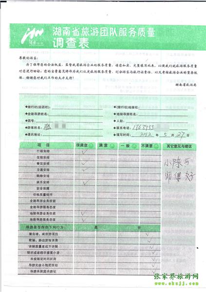 2012年5月27日張先生旅游質(zhì)量反饋