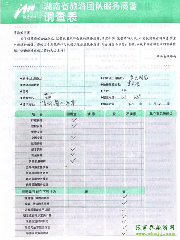 - 游客夏先生為表揚導(dǎo)游李姣姣寫來表揚信致我張家界... [14811]