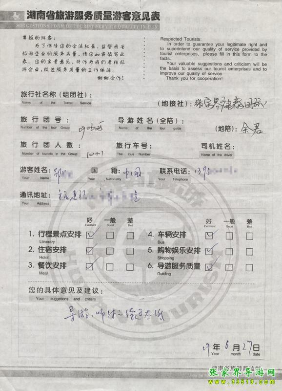 - 游客夏先生為表揚導(dǎo)游李姣姣寫來表揚信致我張家界... [14811]