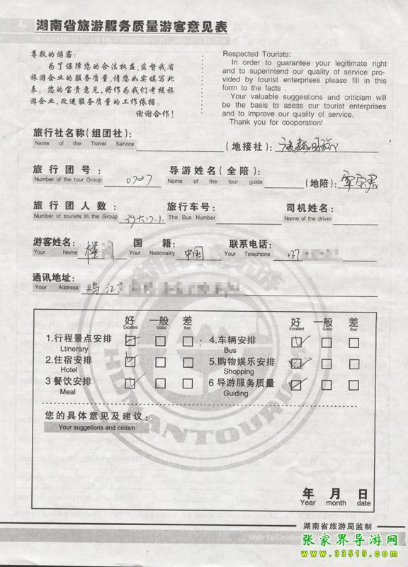 - 2011年10月26日張小姐一行18人旅游質(zhì)量反饋 [10482]