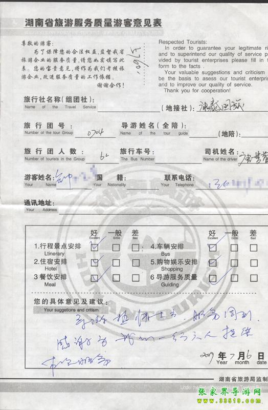 - 游客夏先生為表揚(yáng)導(dǎo)游李姣姣寫來表揚(yáng)信致我張家界... [14811]