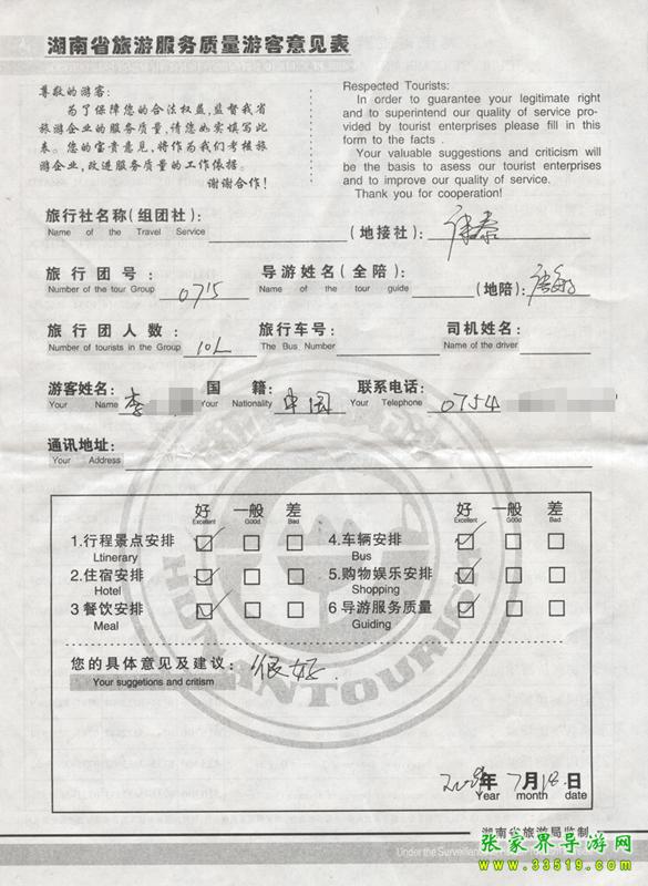 - 游客夏先生為表揚導游李姣姣寫來表揚信致我張家界... [14811]