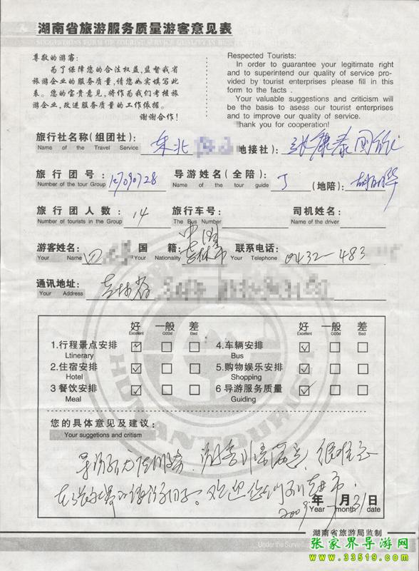 - 2011年10月26日張小姐一行18人旅游質(zhì)量反饋 [10482]