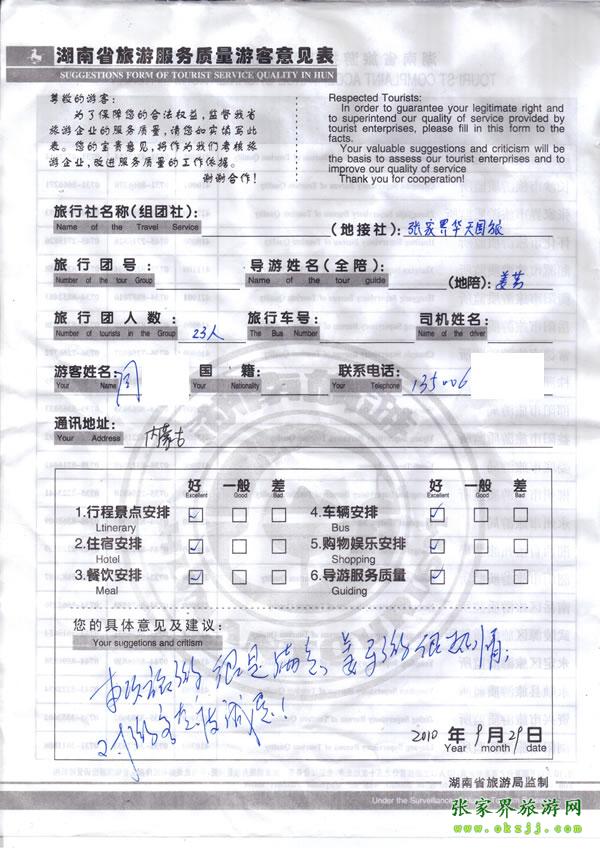 - 2011年10月26日張小姐一行18人旅游質(zhì)量反饋 [10482]