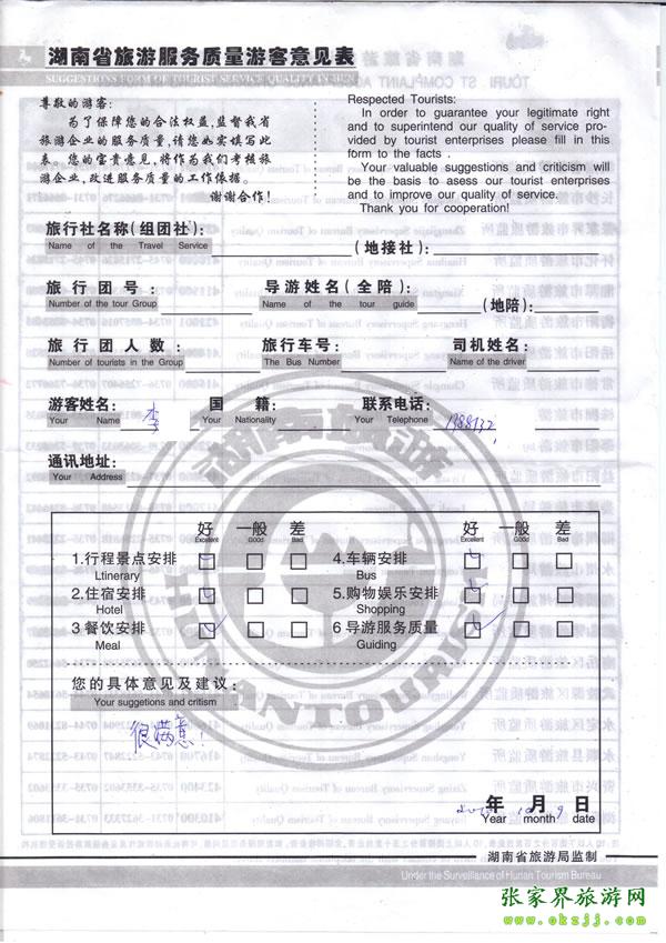 - 游客夏先生為表?yè)P(yáng)導(dǎo)游李姣姣寫(xiě)來(lái)表?yè)P(yáng)信致我張家界... [14811]