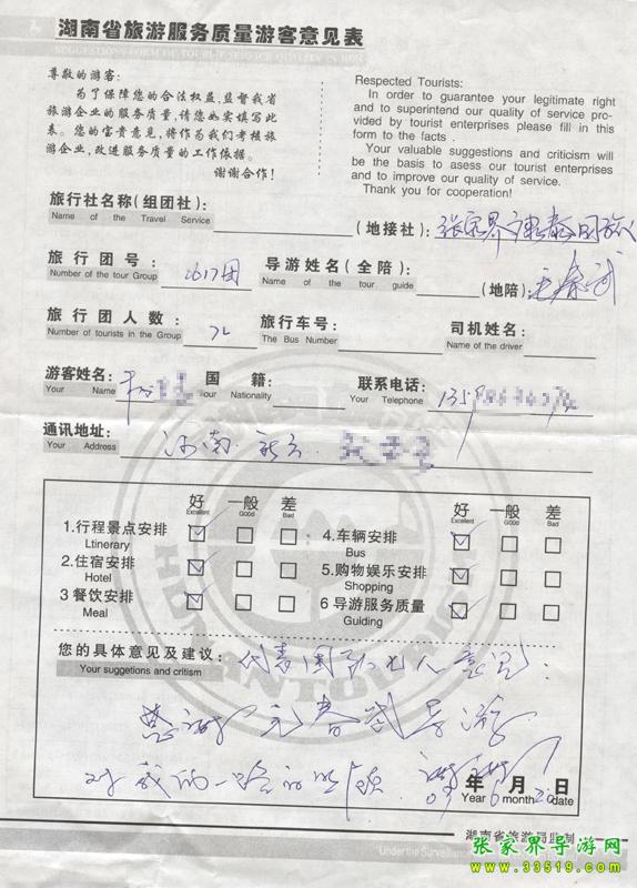 - 游客夏先生為表揚(yáng)導(dǎo)游李姣姣寫來表揚(yáng)信致我張家界... [14811]