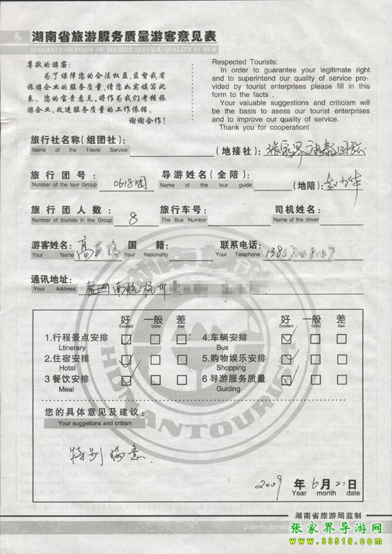 - 游客夏先生為表揚(yáng)導(dǎo)游李姣姣寫來表揚(yáng)信致我張家界... [14811]