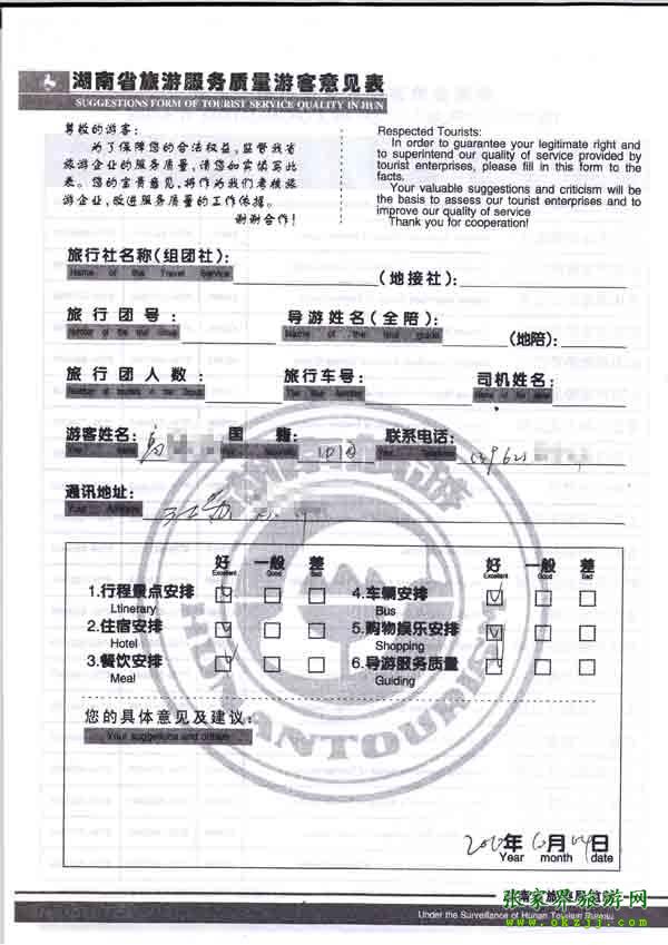 - 2011年10月26日張小姐一行18人旅游質(zhì)量反饋 [10482]