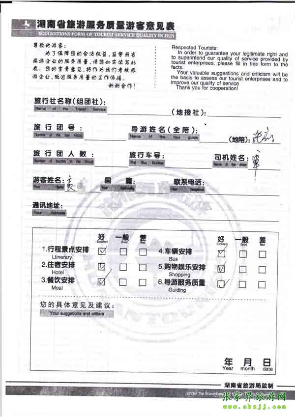 2010年10月17日袁小姐旅游質量反饋