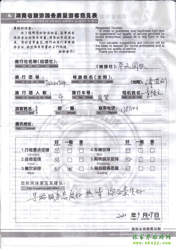 - 游客夏先生為表揚導游李姣姣寫來表揚信致我張家界... [14811]