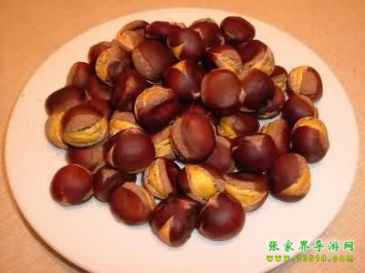 板栗與尖栗(俗名“漩栗”),山毛櫸科,是木本植物,主要含淀粉、糖等,在武陵源區(qū)各景區(qū)都有廣泛的分布。它們是多年生落葉喬木,一般樹高3至5米到10米左右。栗樹春末夏初開花,夏天生長(zhǎng),秋天結(jié)實(shí)。果實(shí)成球形,外殼帶刺,里面栗子光滑成紫色,所以農(nóng)家有“娘被千針衫,兒穿紫龍袍”的謎語。板栗成熟以后,外殼便自然張開,栗子隨風(fēng)脫落。如在板栗林里撿栗子,倒是一大樂趣。“白露”過后,板栗大量成熟,滿樹的栗球都張開了笑口,一遇到颯颯吹來,栗子便唏唏唰唰唰隨風(fēng)脫落,滾進(jìn)山溝里或低洼處,如果運(yùn)氣好,可以撿到一窩一窩的板栗,有時(shí)可以撿幾十斤。