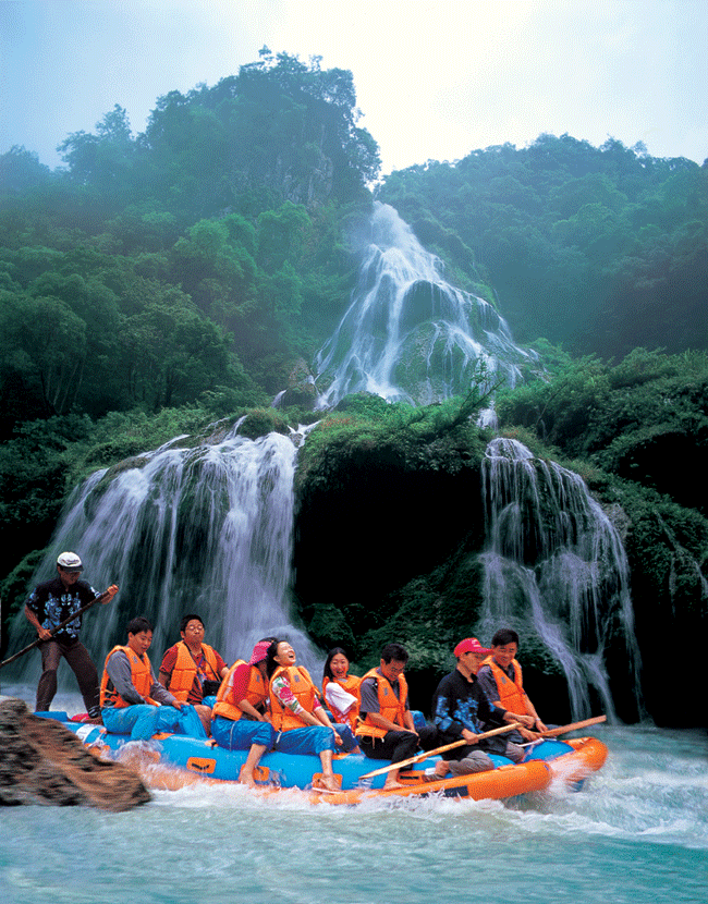 到了大門口,彭導(dǎo)幫我們?nèi)ベI了門票,248元/人,共花去496元。彭導(dǎo)先前給我們預(yù)算是,按最經(jīng)濟的帳目來算的,470元/人(包括進山大門票,但不包括索道、天梯、酒水等),他說出門在外,能節(jié)約點就節(jié)約點。當(dāng)然他也知道我們可能會超出這個標(biāo)準,如果有必要,到時可以再自己花費。買了門票后,我給了他500塊,算是這幾天的費用,他說,不是說好是每人470的嗎,你應(yīng)該是給我444塊。我說,上次謝謝您的關(guān)心,這次不能讓你太吃虧了。彭導(dǎo)說,那今天晚上我叫店家給你們加個菜,呵呵呵。 下午,我們玩了森林公園中的黃石寨和金鞭溪??戳颂鞎鴮毾弧Ⅻc將臺、南天柱、摘星臺、六奇閣,五指峰、金鞭溪、金鞭巖、文星巖、紫草潭、千里相會等,彭導(dǎo)果然是彭導(dǎo),有著二十年的導(dǎo)游經(jīng)驗的他就是不同凡響啊,個個景點都是如數(shù)家珍,說得是頭頭是道。(據(jù)網(wǎng)上說,有些導(dǎo)游是只帶路不講解,讓人只是看看表面,而無法去領(lǐng)略張家界那些精美絕倫的凄美傳說。我個人認為張家界的傳說也是應(yīng)該值得每一個游人去了解,去領(lǐng)略的,如果你來張家界沒有聽到這些傳說的話,那一是你的導(dǎo)游的水平問題,二是你的一個很大的遺憾,你來張家界的經(jīng)歷是不完美的),什么龍蝦花的來歷,金鞭巖的前身,秦始皇和孟姜女與張家界的關(guān)系。晚上乘百龍電梯上袁家界(張家界的核心)一家旅館住宿。晚餐時,一葷一素一湯。我們吃著吃著,老板笑咪咪的搬上一鍋火鍋,當(dāng)?shù)氐耐岭u火鍋。我們很詫異,我說,我們沒有點這個菜?。±习?,你是不是弄錯了?老板說,這是你們彭導(dǎo)叫我特地做的。我突然明白了,一定是彭導(dǎo)是為我多給的那50多塊錢了。由于長途奔波,加上下午又走了很多路,晚上洗了一個澡就睡下了。山里的氣溫很低,在這全國都如火爐時,張家界的晚上卻要蓋很厚的被子,真是一塊寶地啊。 第二天早上,我們參觀了袁家界的風(fēng)景,其中最有名的當(dāng)然數(shù)天下第一橋,這是由兩座巖石山的山頂自然生長在一起,非人所能為也。天下第一橋的稱號當(dāng)之無愧啊。當(dāng)然在袁家界,后花園也是不能不看的。張家界號稱“峰三千,水八百”,在這里你就能明顯的感覺到這句話的前半句是那么的實在??赐陱埣医绲暮诵脑医?,我們乘車到了天子山(張家界景區(qū)內(nèi)的最高的地方)。玩了賀龍公園、御筆峰、仙女散花、西海、石船出海、仙人橋、天子廟、十里畫廊、一步難行。不巧的是,那天山上下了一點陣雨,雨后一條彩虹掛在天上,更重要的是山上起了一點霧,使整座山都籠罩在霧中,若隱若現(xiàn),看上去就象是在云海中,好象老天特地配合我們似的,難得一見的西海等正好被我們趕上了。彭導(dǎo)告訴我們,這樣的機會是很難得的,可能是張家界為了感謝我的再次到來,給了我一個特別的禮物吧。我大笑。晚上趕到昨天住的地方去住宿。不提。 第三天我們玩了烏龍寨、三道鬼門關(guān)、天波府、一步登天、空中走廊等。主要是在楊家界的景區(qū)范圍內(nèi)。本來是第三天下午要去鳳凰的,但是考慮到我和女友小嵐好容易來張家界一次,盡量將張家界的能玩的地方去玩一下。我也曾聽說張家界不僅峰三千,水八百,同時天然溶洞也是非常不錯的,據(jù)說其中一個溶洞為一根鐘乳石投保了1個還是2個億,(不怎么記得了,呵呵。)而且在張家界的宣傳資料上還看到了有漂流,打水仗等非常刺激的項目。我于是問一下彭導(dǎo),能否幫我們聯(lián)系一下,彭導(dǎo)很爽快的答應(yīng)了,他幫我們聯(lián)系了九天洞和茅巖河的公司。在彭導(dǎo)的上下打通下,本來是315元/人的行價,硬是給用278元/人的價格給拿下了。當(dāng)搞定這些時,已經(jīng)外面是天黑一片了(彭導(dǎo)家就在楊家界)彭導(dǎo)說他想回家看看,明天我們會和一群人去看洞和漂流,他就不陪我們?nèi)チ耍魈煜挛缢麜趶埣医缡袇^(qū)去接我們,到時會有車送我們?nèi)ナ袃?nèi)。然后他會送我們上去鳳凰有車,并幫我們?nèi)ヂ?lián)系鳳凰的朋友來招待我們。 第四天,清晨我們便踏上了汽車去看洞漂流。號稱亞洲第一大洞的九天洞果然是名不虛傳,我們把它現(xiàn)在開發(fā)的部分粗略的走了一下,就花了我們近月4個小時,洞中鐘乳石遍地,在五彩斑闌的燈光下,顯得晶瑩剔透,閃閃發(fā)光,讓人感覺到是到了水晶宮一般,地下還有陰河,遠處通知海(據(jù)說)。對了,洞中溫度很低,常年在10多度。讓人在其中感覺到一陣陣寒意。故想進去的朋友記得多穿點衣服,以免著涼,切記。我們當(dāng)時就是吃了很大的虧,從洞中出來時,小嵐就在點喀漱。下午來到茅巖河漂流。上船前看到有人賣水瓢,心中不免奇怪。雖說,張家界金鞭溪的水可以喝,但也不是每一條河的水都能喝???于是上前去問,一打聽才知道,這瓢不是用來舀水喝的,而是用來打水仗的。本來因為小嵐有點小感冒,我們打算保持中立,但一看到各位船友們個個磨拳擦掌,人手一把瓢或者水槍(這是當(dāng)?shù)厝擞弥褡幼龅囊环N土水槍),還且對我們是虎視眈眈,我想我參加是不成了。于是我們也花了幾塊錢買了兩把。船開動后,大家開始時還是比較興奮,不時用瓢來劃一下船,但是沒多久,大家就開始尋找新的開心方式了,于是大家都開始蠢蠢欲動了,大家也都不客