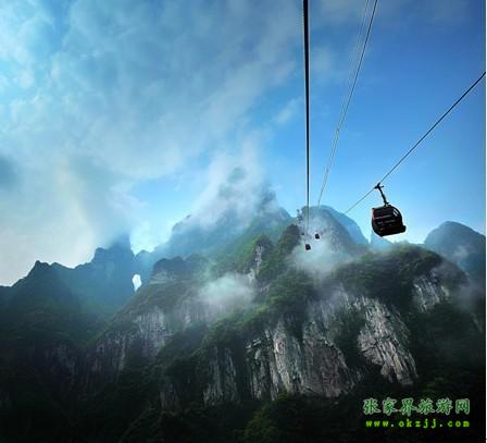 ![]() 纜車從天門山主峰云夢(mèng)仙頂至天門山寺前櫻桃灣廣場(chǎng),總長(zhǎng)度800米,單程運(yùn)行約10分鐘,為無(wú)遮蓋的雙人吊椅式,是天門山山頂?shù)囊粭l絕佳空中觀景長(zhǎng)廊。乘坐纜車緩緩飄行在林海之上,絕美的空中原始花園盡收眼底,白云裊裊,滿目碧翠,時(shí)有飛鳥在腳下掠過(guò),時(shí)有樹(shù)梢花朵似探手可及。神仙般的瀟灑飄逸和無(wú)比的心曠神怡讓人流連忘返。