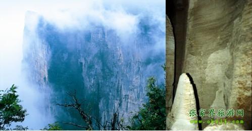![]() 在天門山的峭壁上,有一個(gè)方形洞口,即為天門山十六洞里最為著名的鬼谷洞.這個(gè)洞上距山頂百米,下臨深淵萬(wàn)丈,地勢(shì)險(xiǎn)峻,因鬼谷先師曾經(jīng)在此隱居修煉而得名.在“天門十景”里,鬼谷洞以“玄壁隱仙”著稱.